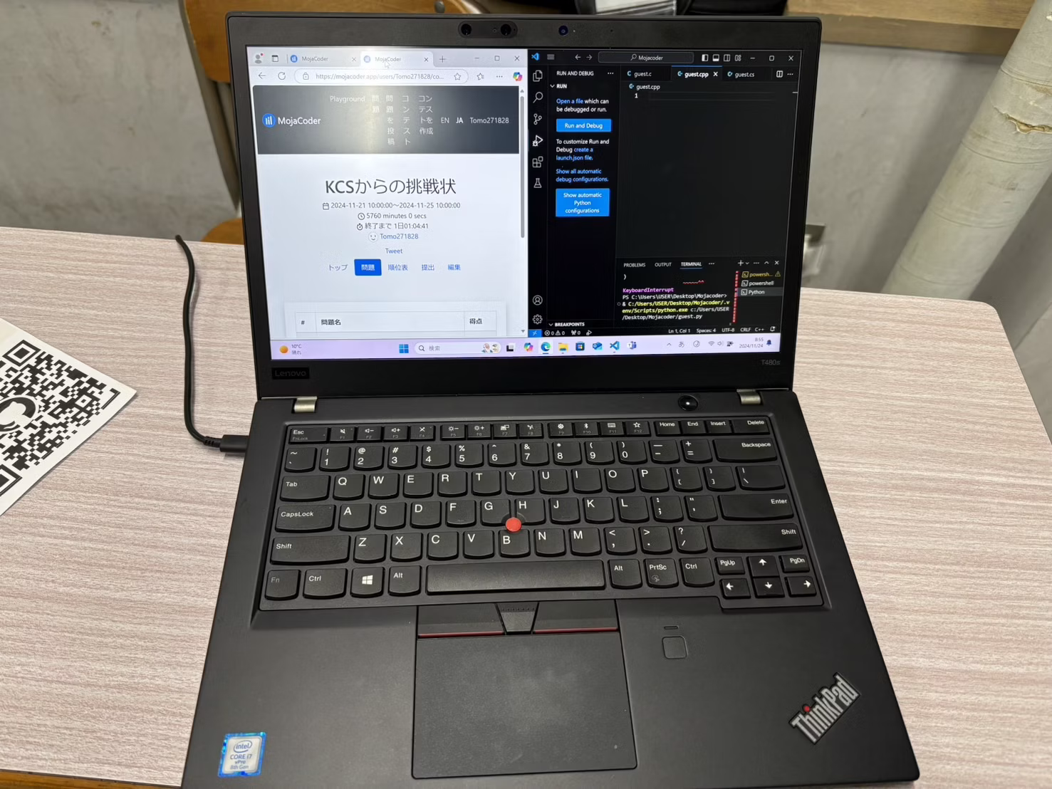 競プロ班では、競技プログラミングサイトの AtCoder に参加し、競技プログラミングを行っています。また、学祭では問題投稿サイトを利用した自作問題の展示も行っています。